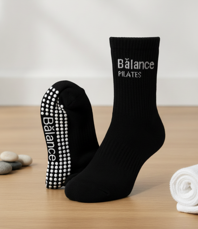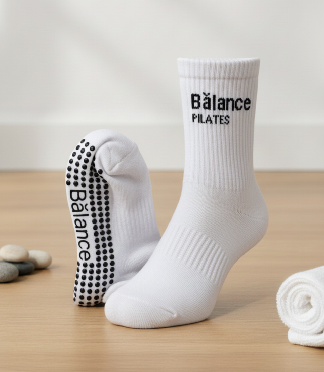 Anti-Rutsch-Socken für maximalen Halt auf glatten Böden. Ideal für Pilates, Barre und Yoga. Bieten Hygiene und Stabilität dank strategisch platzierter Noppen.
